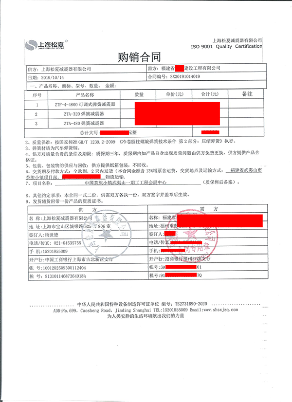 【中国茶旅小镇(武夷山)会展中心】配套弹簧减震器合同